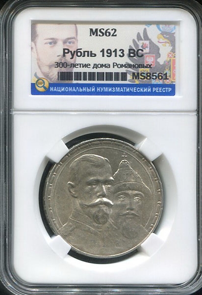 Рубль 1913 "300-летие царствования Дома Романовых" (в слабе) (ВС)