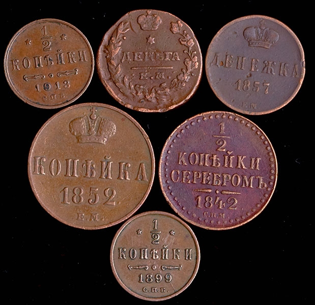 Набор из 6-ти медных монет