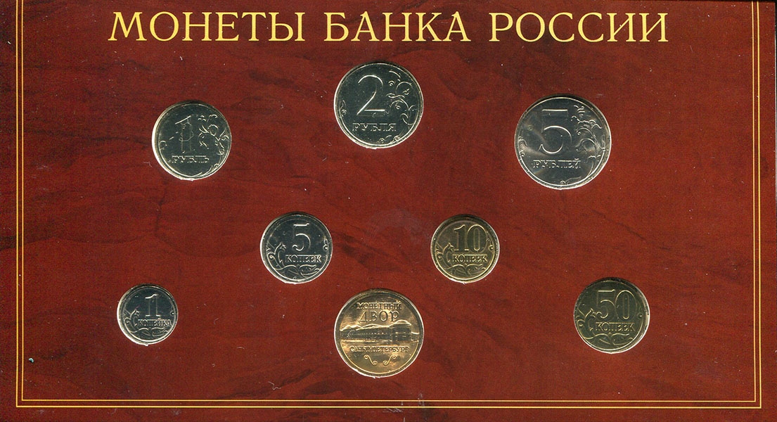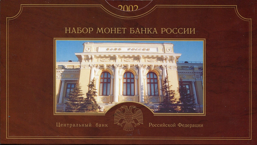 Официальный набор Гознака разменных монет 2002 года, отчеканенных на Санкт-Петербургском монетном дворе.