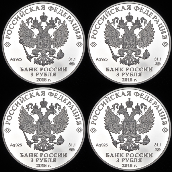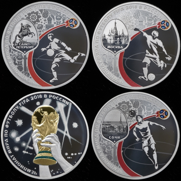 Набор из 4-х монет 3 рубля 2018 "Чемпионат мира по футболу FIFA 2018"