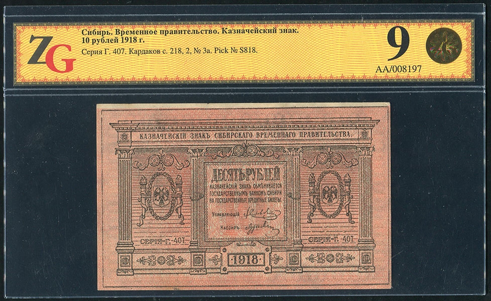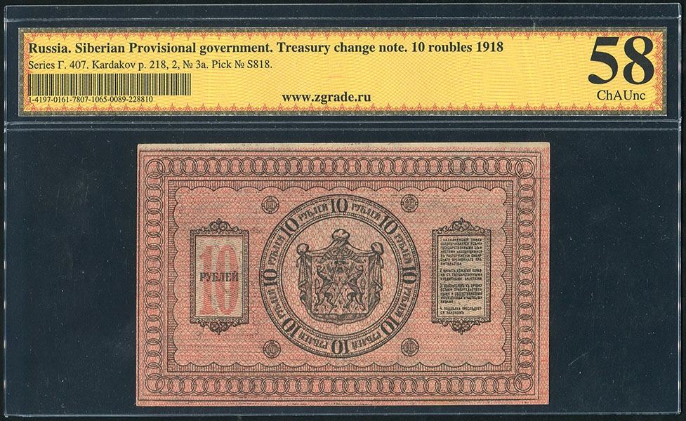 10 рублей 1918 (Сибирское временное правительство) (в слабе)