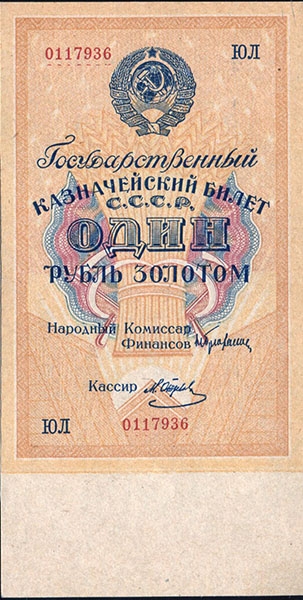 Государственный казначейский билет 1 рубль, ЮЛ 0117936.