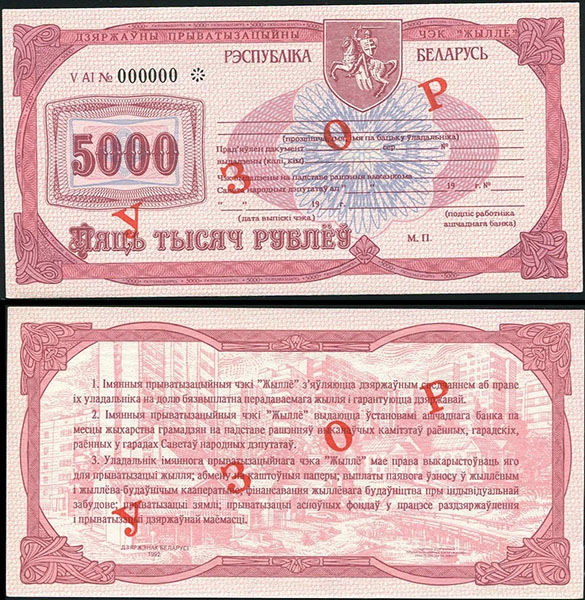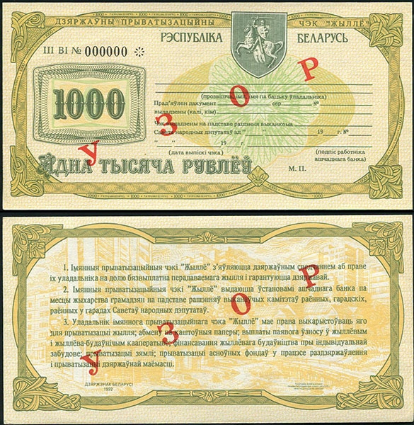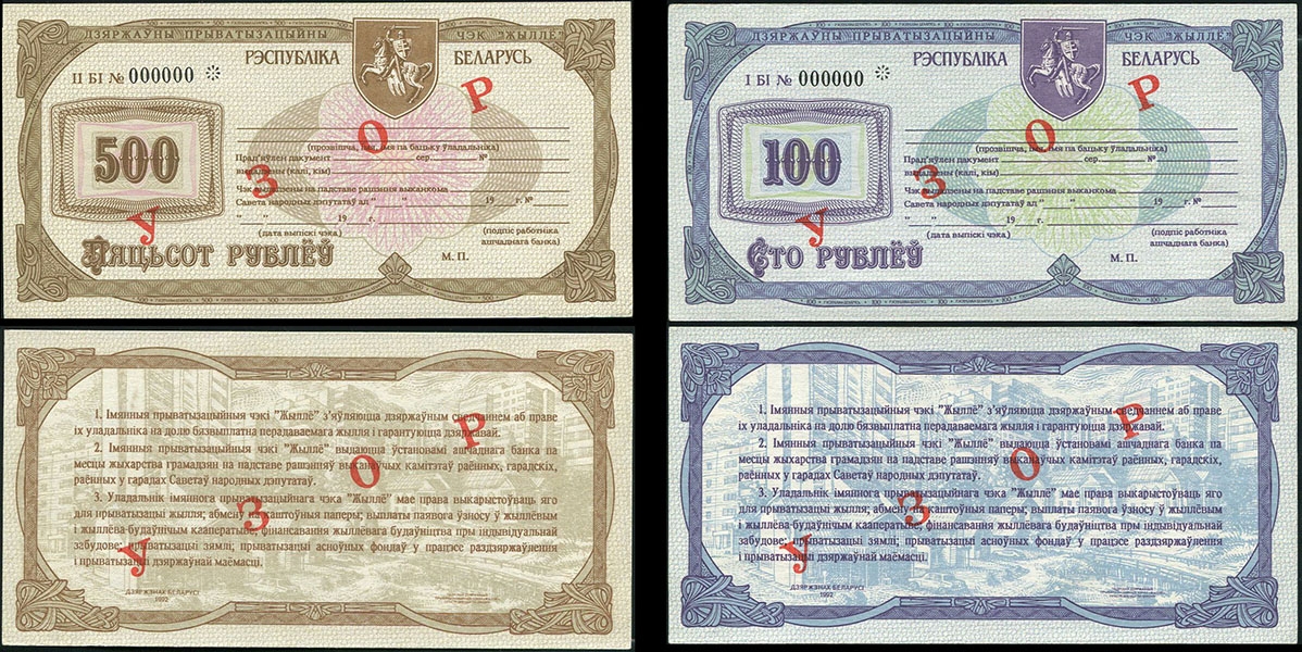 Набор из 4-х Жилищных чеков 1992. ОБРАЗЕЦ (Беларусь)