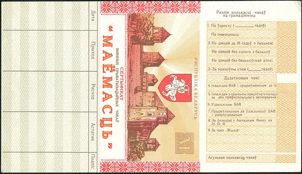 Чек "Маёмасць". ОБРАЗЕЦ (Беларусь)