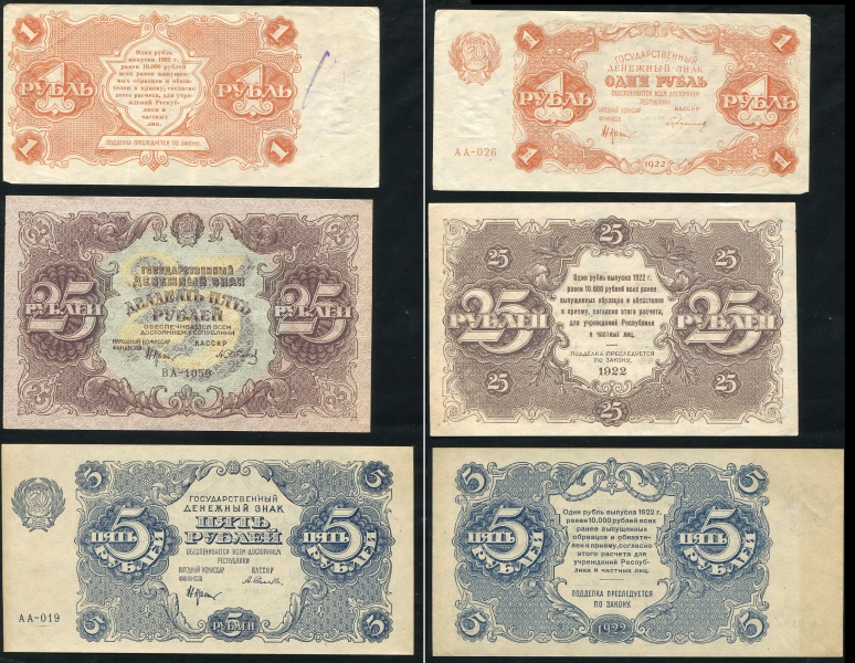 39. 1 рубль1922 25 рублей1922 5 рублей1922 10 рублей1922 100 рублей1922