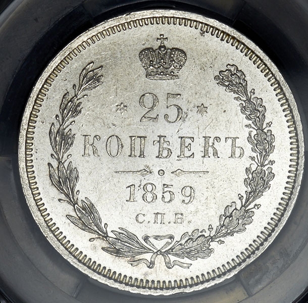 25 копеек 1859 (в слабе) СПБ-ФБ