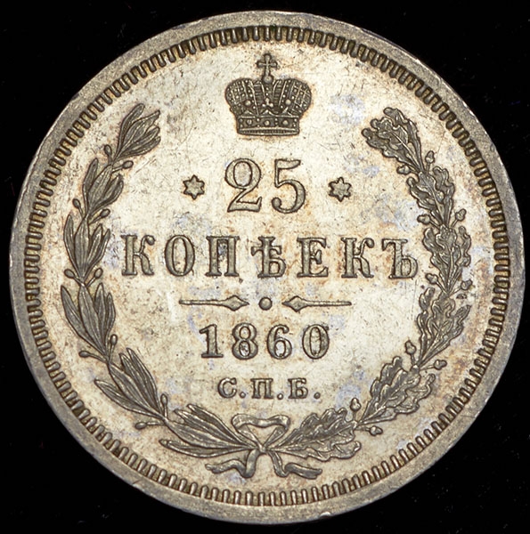 25 копеек 1860 СПБ-ФБ