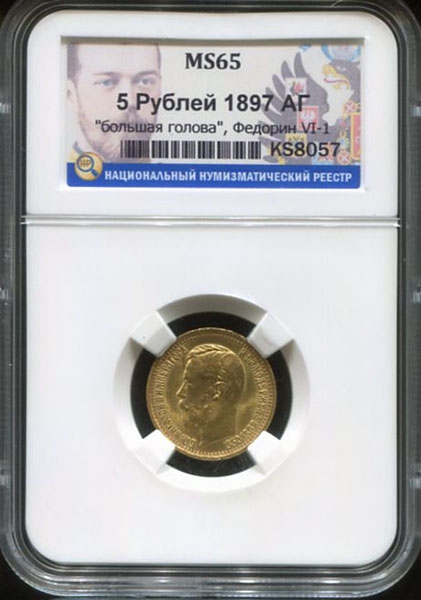 5 рублей 1897 (в слабе) (АГ)