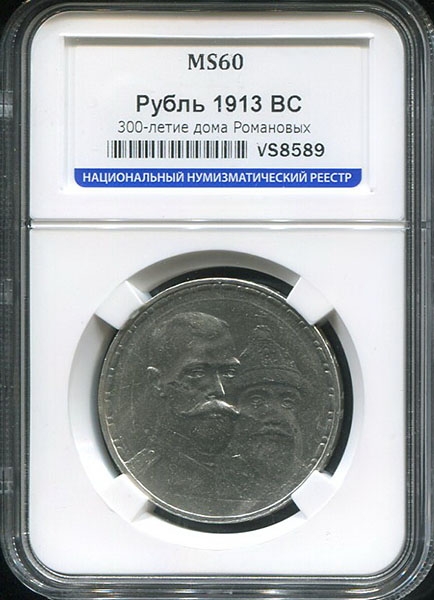 Рубль 1913 "300-летие царствования Дома Романовых" (в слабе) (ВС)