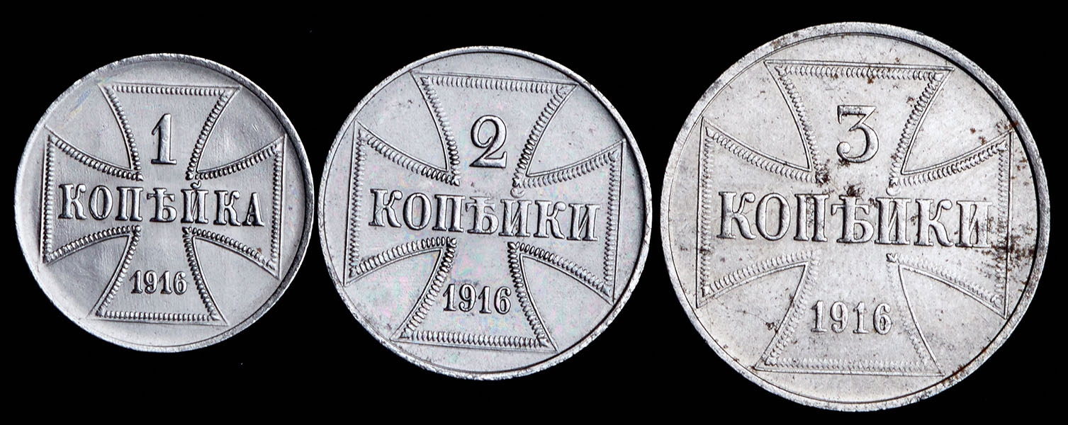 В набор вошли: - 3 копейки 1916 OST - MS 62; - 2 копейки 1916 OST - MS 63; - Копейка 1916 OST MS 63.