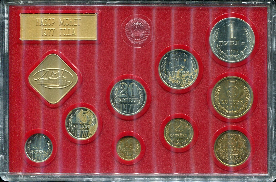 Годовой набор монет СССР 1977 (в тверд. п/у) ЛМД