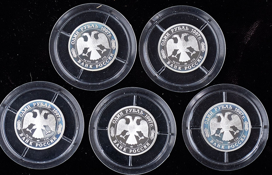 Набор из 5-ти монет "100-летие российского футбола" 1997 ЛМД