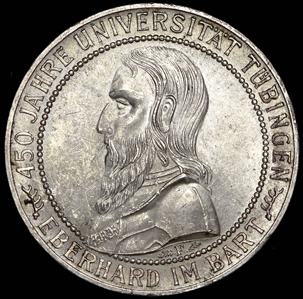 5 марок 1927 "450 лет Тюбингенскому университету" (Германия) F