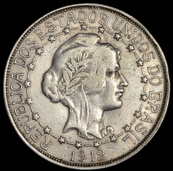 Круговая легенда аверса "REPUBLICA DOS ESTADOS UNIDOS DO BRASIL".