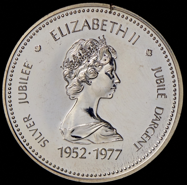 Чеканена в честь серебрянного юбилея правления королевы Елизаветы II.