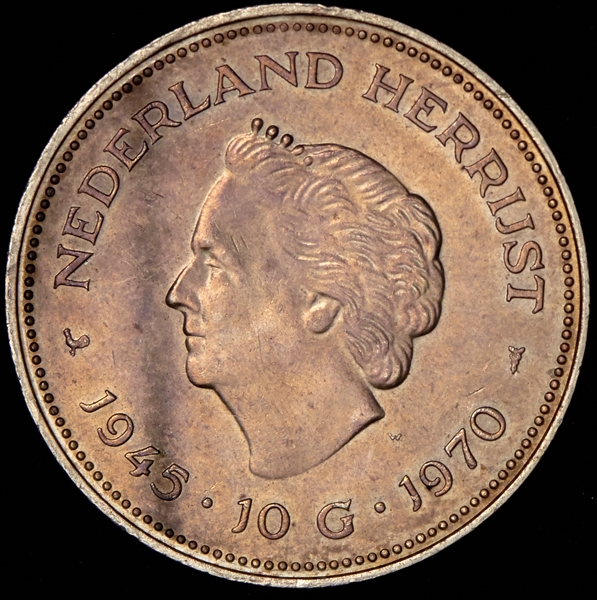 10 гульденов 1970 "25 лет освобождения Нидерландов от фашистских захватчиков" (Нидерланды)