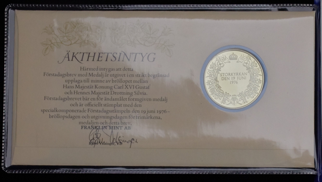 Медаль "Свадьба короля Карла XVI Густава и королевы Сильвии" (в п/у) (Швеция)