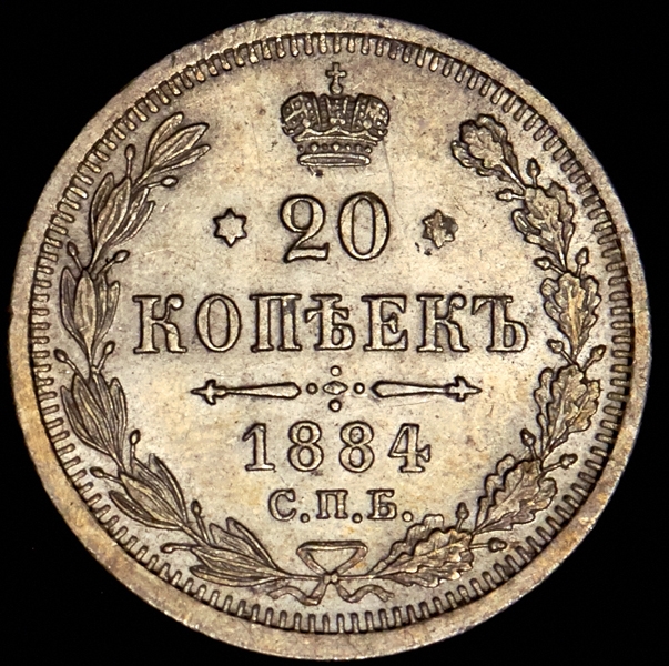 20 копеек 1884 СПБ-АГ