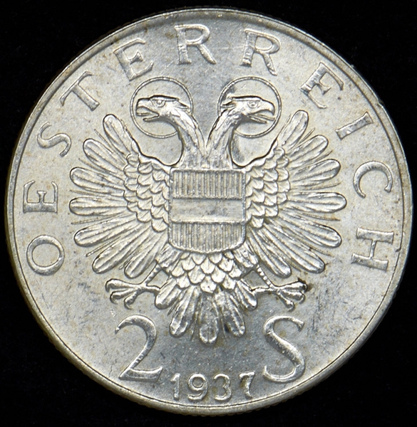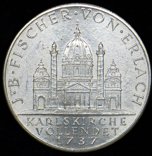 2 шиллинга 1937 "200 лет со дня завершения строительства церкви Святого Карла" (Австрия)