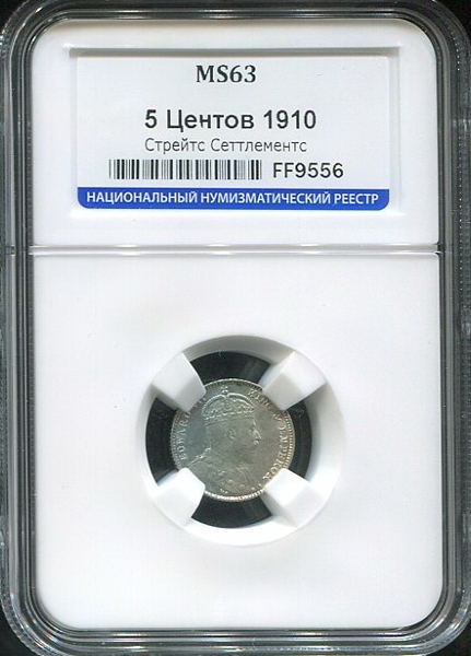 5 центов 1910 (Стрейтс Сетлментс) (в слабе)