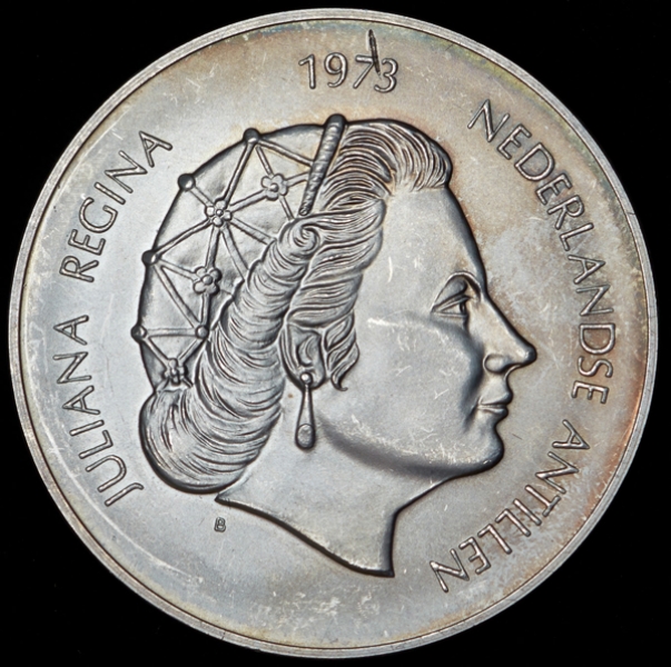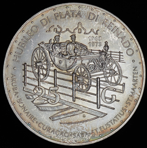 25 гульденов 1973 "25 лет правлению Королевы Юлианы" (Нидерландские Антиллы)
