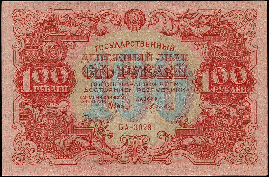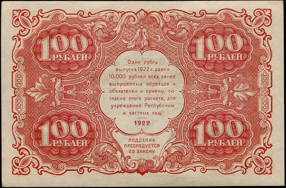 Государственный денежный знак 100 рублей 1922 г., БА-3029. Кассир Силаев.