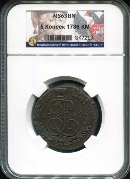 5 копеек 1786 (в слабе) КМ