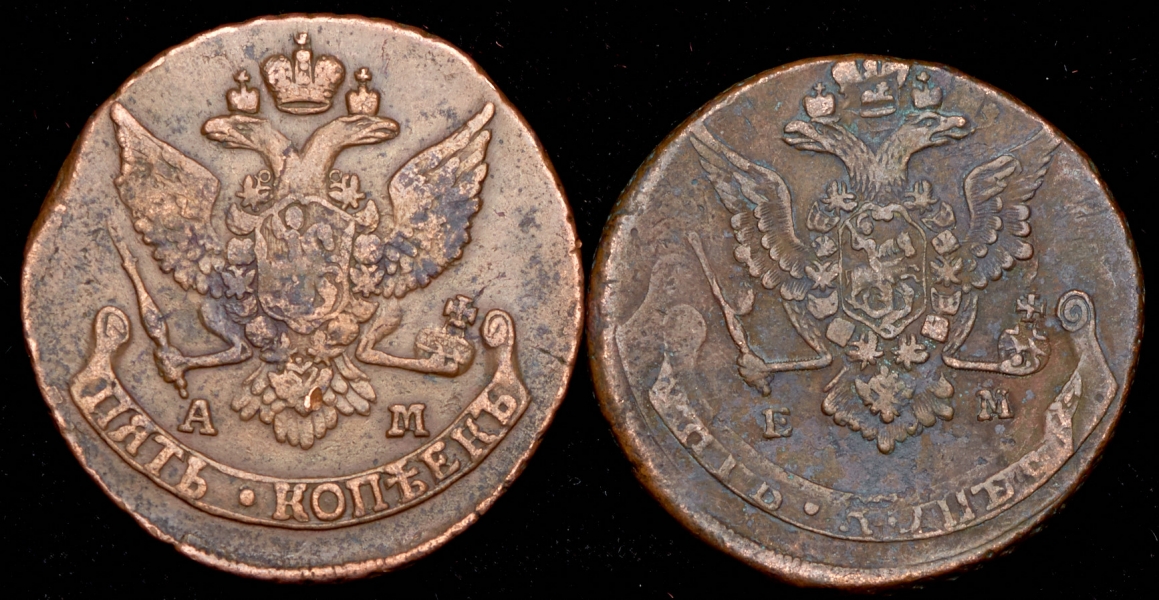 В набор вошли: 1) 5 копеек 1789 АМ 2) 5 копеек 1778 ЕМ