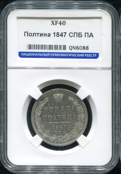 Полтина 1847 (в слабе) СПБ-ПА