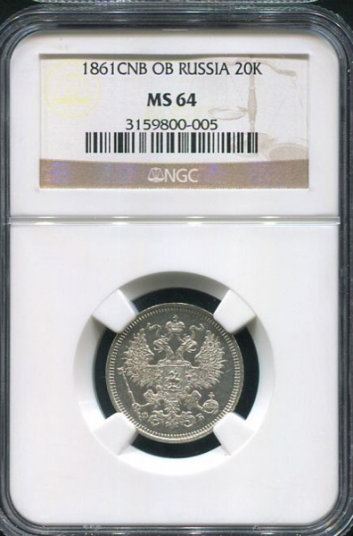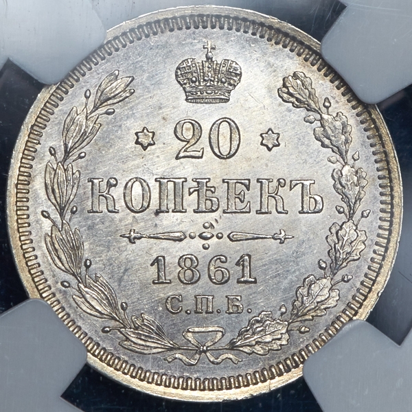 20 копеек 1861 (в слабе) СПБ-ФБ