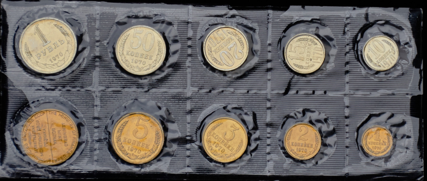 Годовой набор монет СССР 1970 года Ленинградского монетного двора с жетоном.