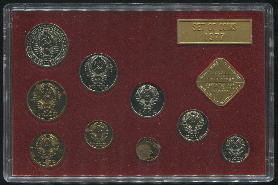 Годовой набор монет СССР 1977 года Ленинградского монетного двора с жетоном.