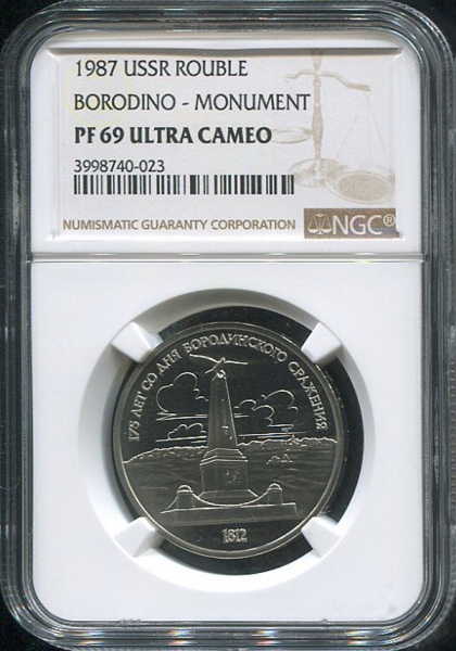 Рубль 1987 "175-летие Бородинского сражения: Памятник Кутузову" (в слабе)