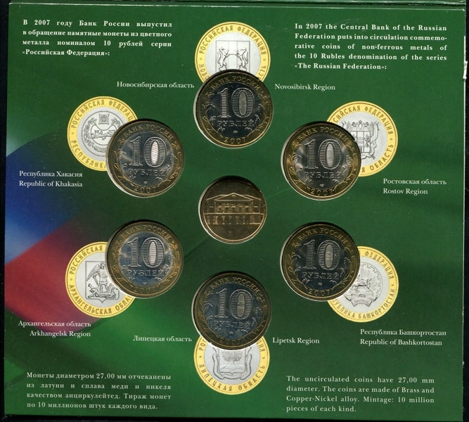 Набор 10-рублевых монет серии "Российская федерация" выпуск №3.