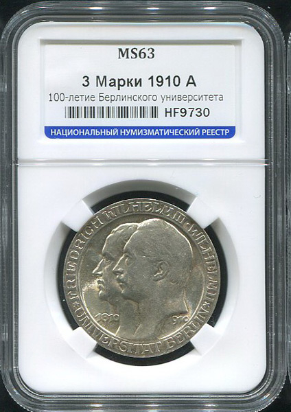 3 марки 1910 "100 летие Берлинского университета" (Германия) (в слабе) А