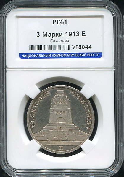 3 марки 1913 "100-летие битвы при Лейпциге" (Саксония) (в слабе) Е