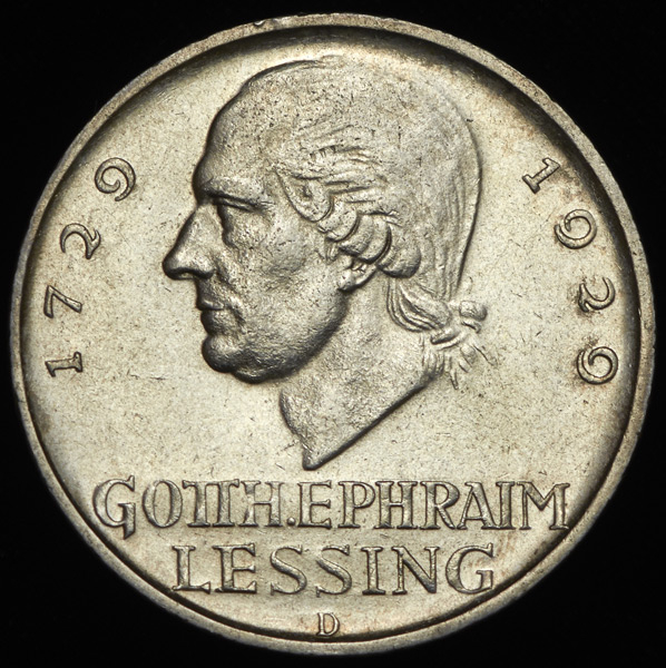 Чеканена в честь 200-летия со дня рождения Готхольда Эфраима Лессинга.