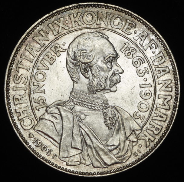 2 кроны 1903 "40 лет правления короля Кристиана IX" (Дания)