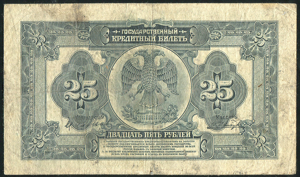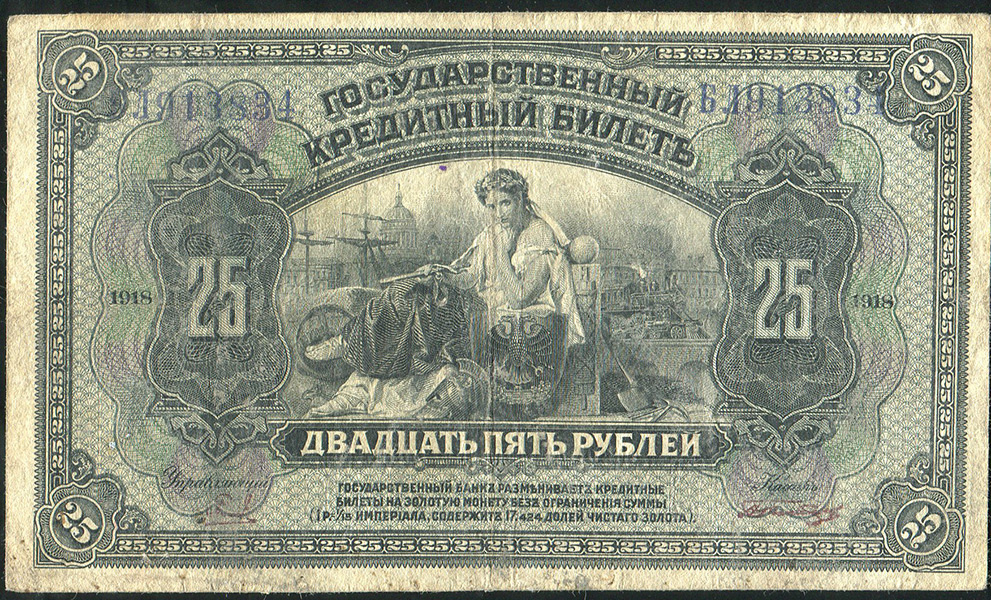 25 рублей 1918 года. Государственный кредитный билет. Временное правительство Дальнего Востока.