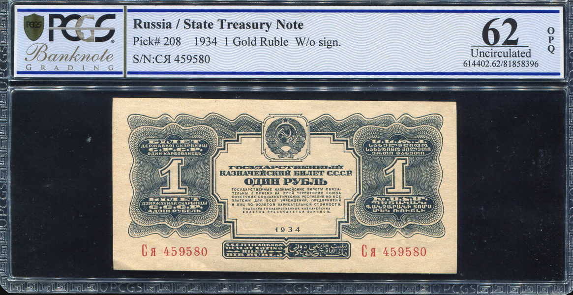 Государственный казначейский билет СССР образца 1934 года, 2-й выпуск с 1937 года (без подписи наркома финансов), Ся 459580.