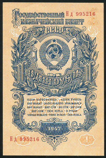 Государственный казначейский билет 1 рубль образца 1947 года, Нд 995216.