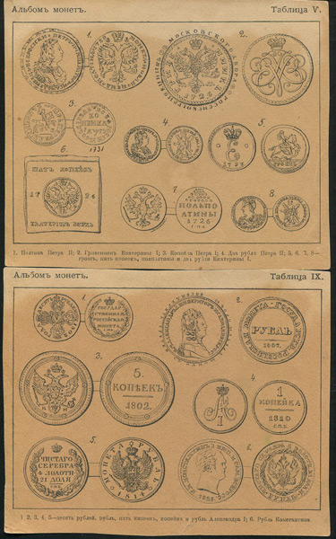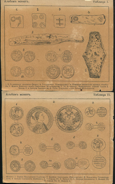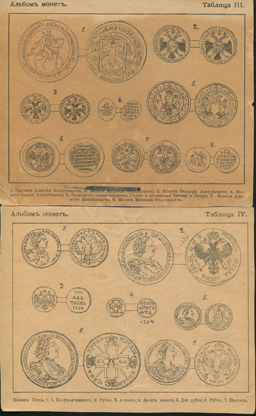 Таблицы с изображениями монет из книги Васильевского М. "Альбом монет" 1913