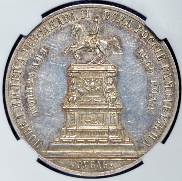 Рубль 1859 "С памятником Николаю I" (в слабе)
