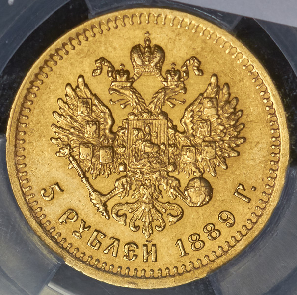 5 рублей 1889 (в слабе) АГ-(АГ)