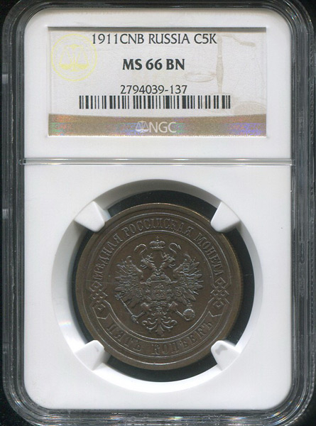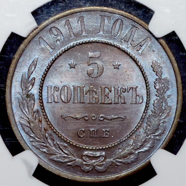 5 копеек 1911 (в слабе) СПБ