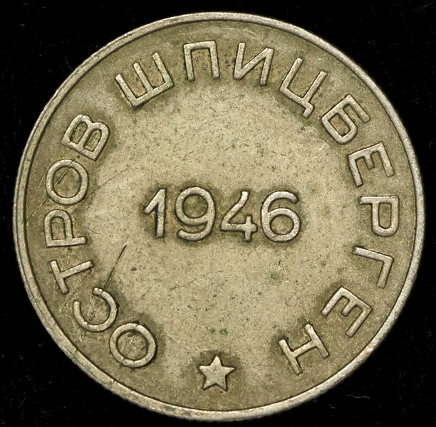 Металлическая бона треста "Арктикуголь", введенные правительством СССР после окончания Великой Отечественной Войны для обращения в шахтерских поселках на острове Шпицберген, находящегося под протекторатом Норвегии.