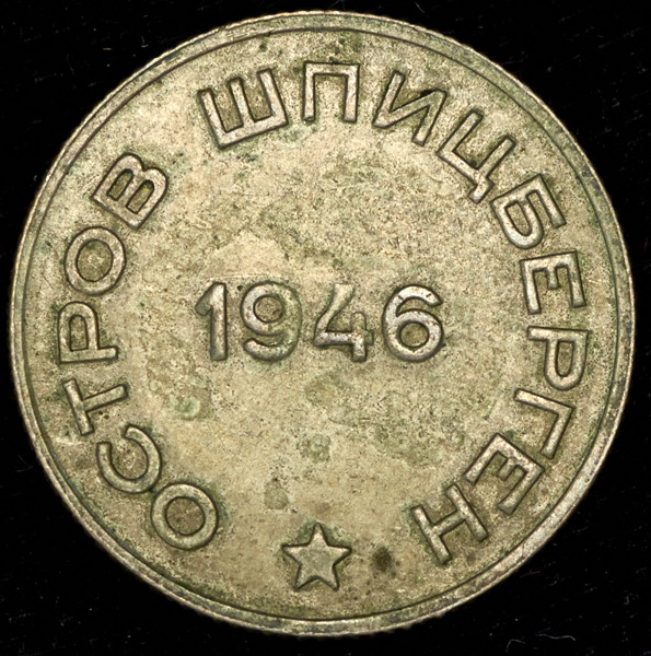 Металлические боны треста "Арктикуголь", введенные правительством СССР после окончания Великой Отечественной Войны для обращения в шахтерских поселках на острове Шпицберген, находящегося под протекторатом Норвегии.