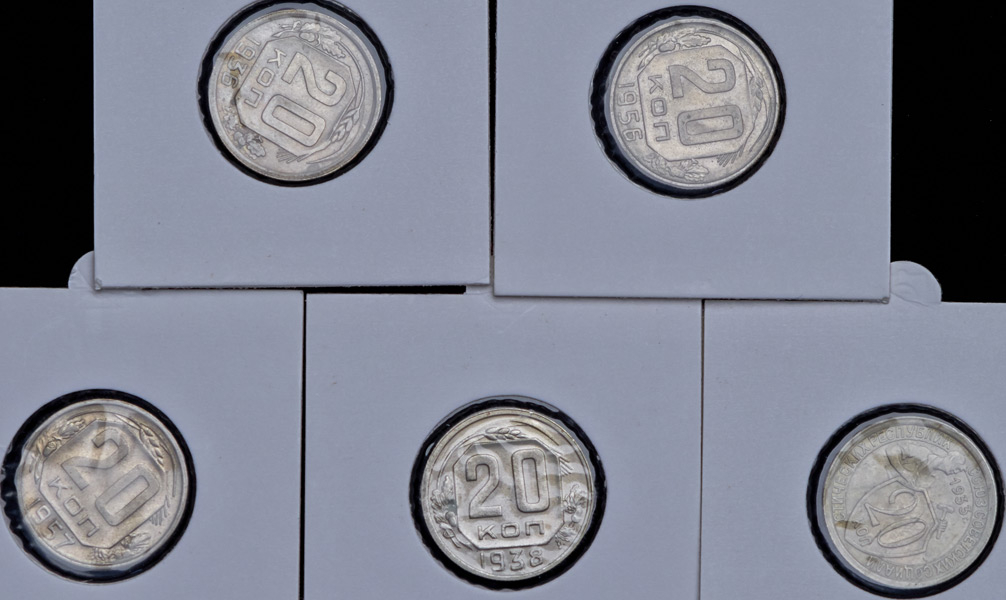 Набор из 5-ти монет 20 копеек СССР