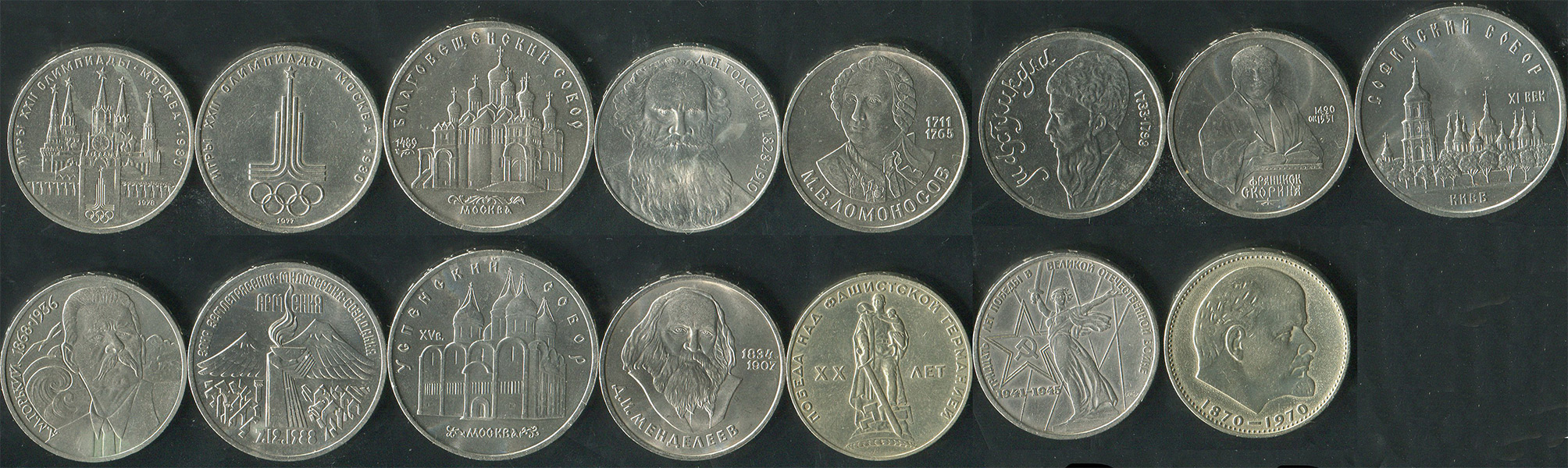 Набор из 30-ти советских монет, в т.ч. 15 памятных.