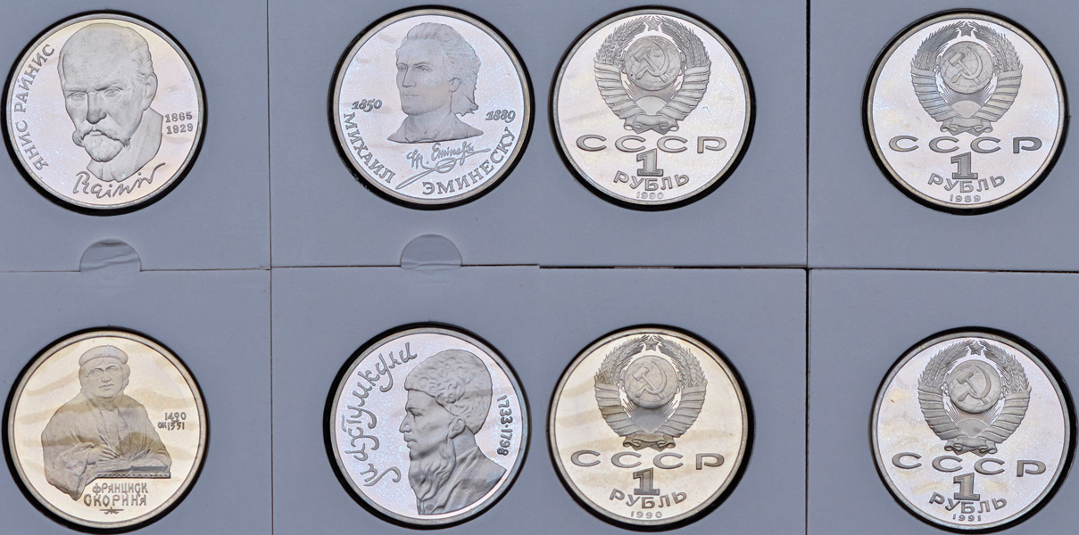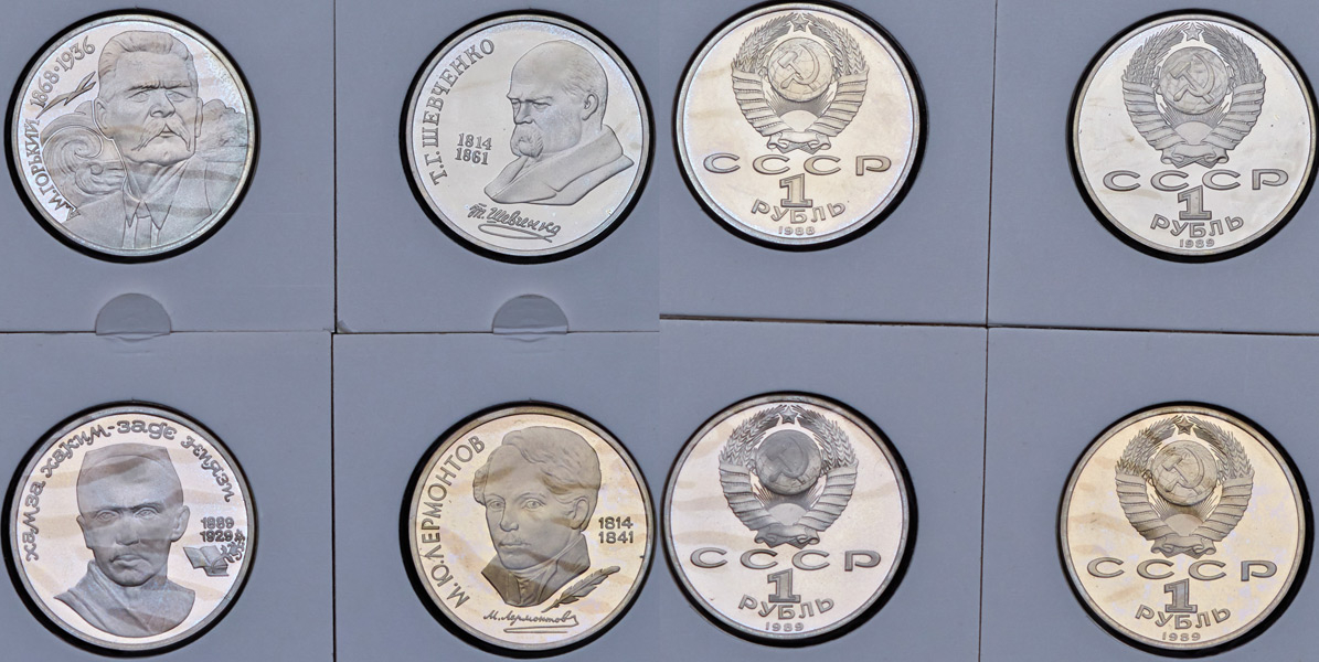 В набор вошли памятные монеты посвященные выдающимся писателям России.